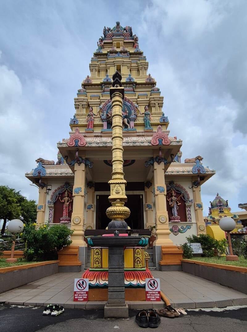 El día fue de cambio de planes e improvisaciones. Habíamos pensado ir al zoo pero llovía, así que decidimos ir a ver las siete cascadas de Tamarin. De camino llovía tanto que pensamos que meternos en una montaña con lluvia tampoco era buena idea y volvimos a cambiar de plan. Terminamos en la capital, Port Luis. Yo quería visitar un templo Hindú y justo entrando a la ciudad pasamos por delante de uno y había un sitio libre para aparcar. Nos descalzamos para entrar y nos gustó mucho. Figuras de elefantes sagrados vestidos con telas y adornos, estatuas de diosas con muchos brazos, incienso, música de fondo... toda una experiencia.