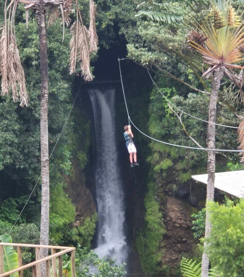 Tienen varias tirolinas y algunas se pueden hacer también con los más peques. Nosotros hemos hecho dos a la cascada y vueta. Mucho más grande de lo que me esperaba. Me ha dado hasta un poco de miedo.